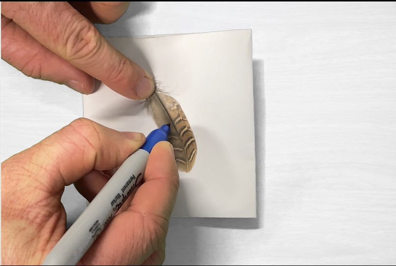 Feathers must be labeled legibly with enough information to identify the individual bird from the list on your sample submission form. We strongly recommend writing on a piece of masking tape and folding it around each feather. Please avoid taping the root of the feather as this is where we sample the DNA.